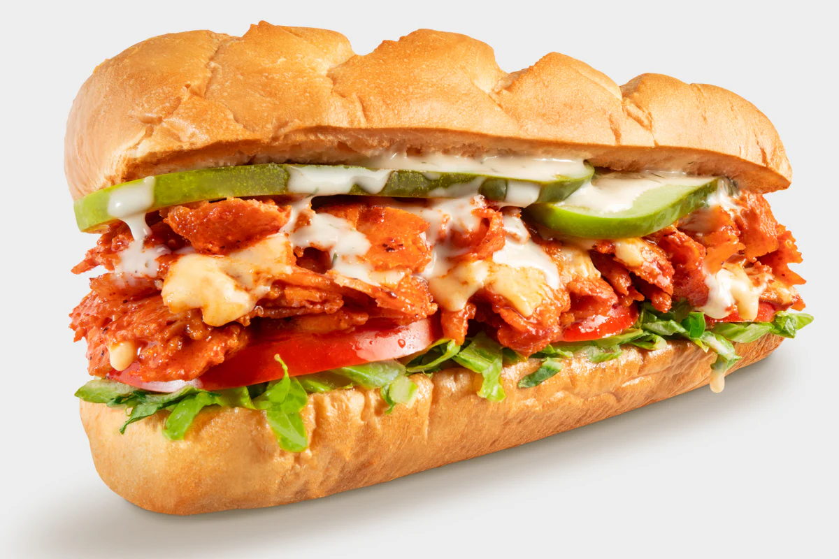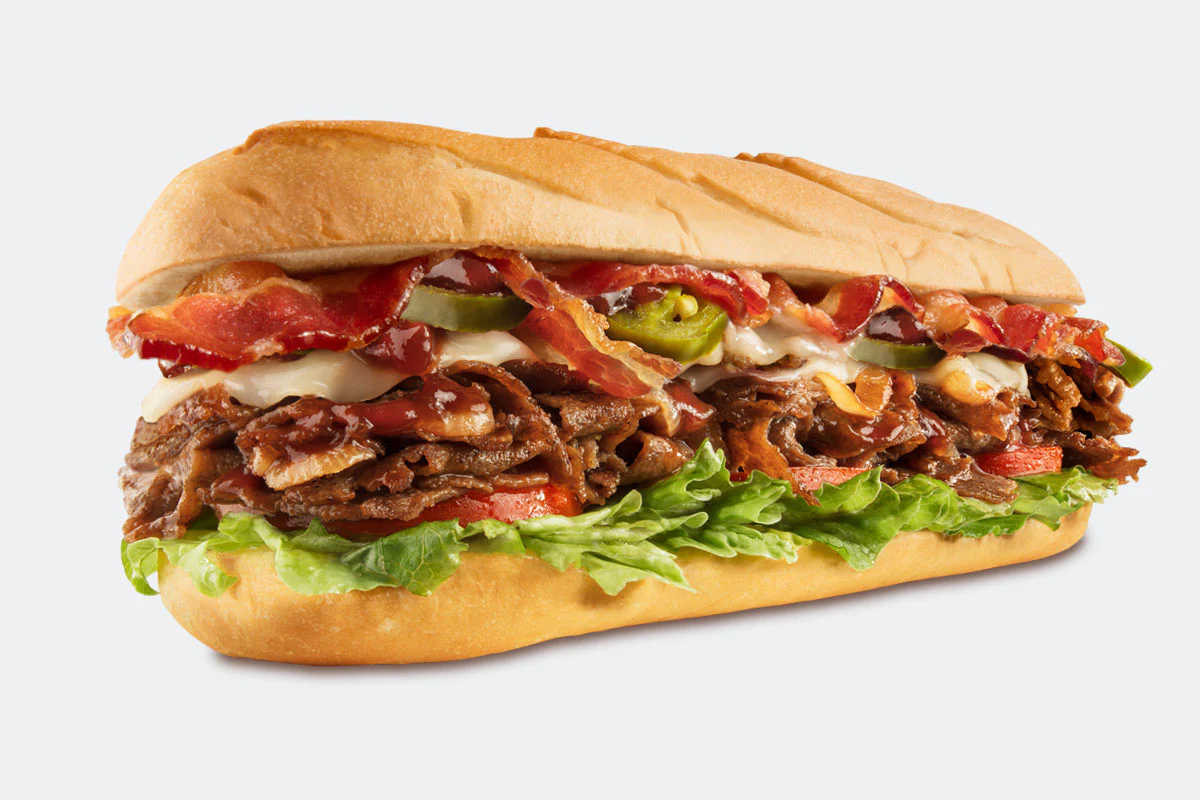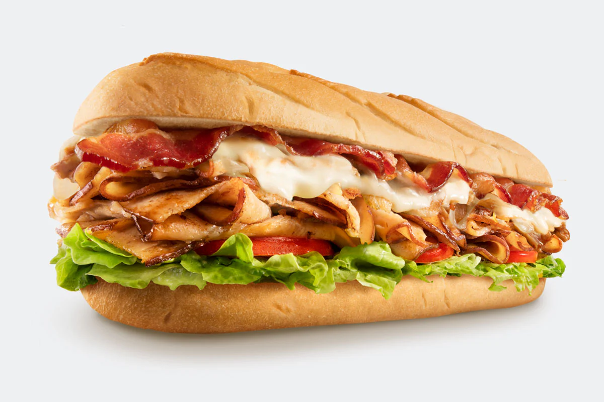 The new Bacon Chipotle Chicken Cheesesteak features grilled and seasoned all-white meat chicken, sautéed onions, and sliced bacon, all topped with Provolone cheese and smothered in Chipotle Ranch sauce. This cheesesteak comes with lettuce and tomato.