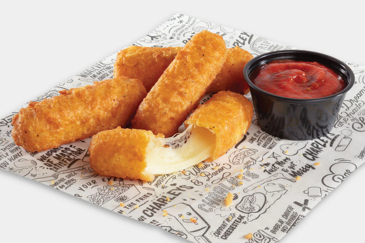 Four breaded and fried mozzarella sticks and one 2-ounce side of marinara sauce.