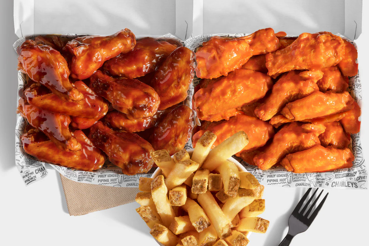 Fifty Boneless Chicken Wings hand-tossed in your choice of sauce or rub. Comes with two Large Original French Fries, fried to perfection, and tossed in salt and pepper