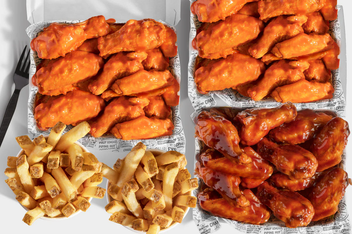 Fifty Classic Bone-In Chicken Wings hand-tossed in your choice of up to 4 sauces or rubs.