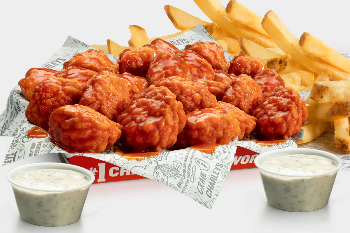 Thirty Boneless Chicken Wings hand-tossed in your choice of up to 3 sauces or rubs.