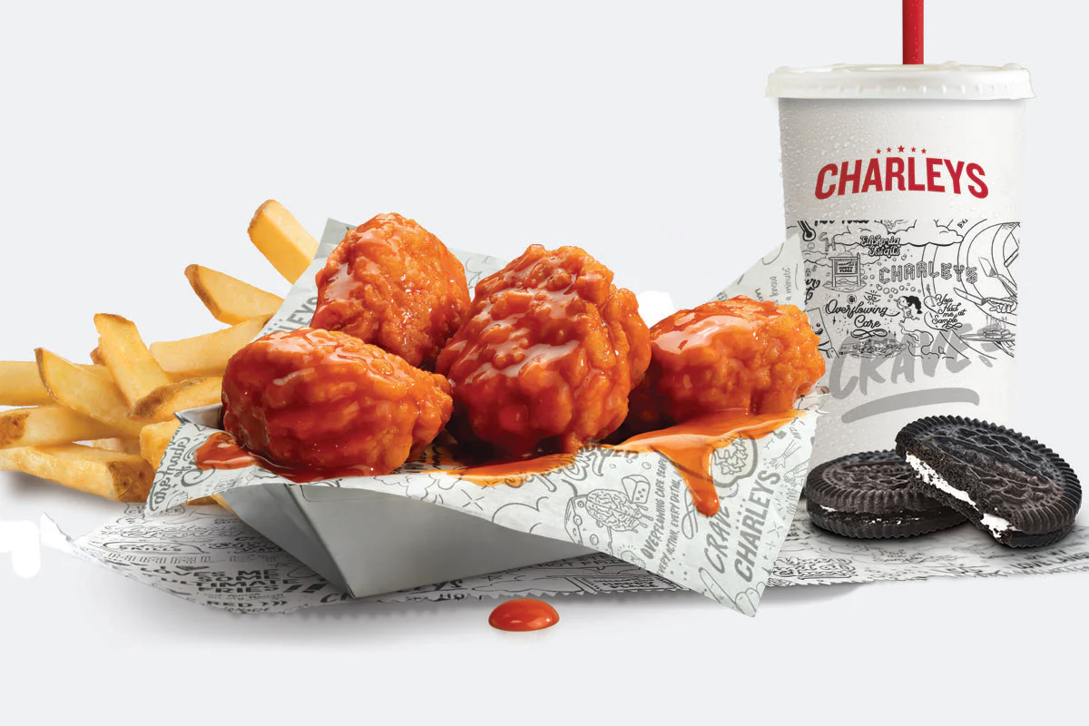Boneless or Classic Wings Tossed in our Nashville Hot Sauce. Comes with a regular sized fry. WARNING -- This flavor is very hot.